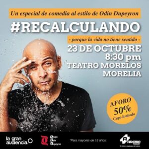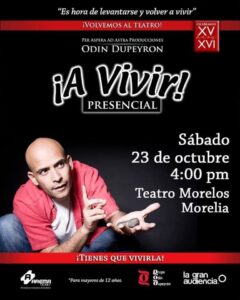 Morelia, Michoacán, a 09 de octubre del 2021.- ELO Producciones y La Gran Audiencia presentarán en Morelia al escritor y productor Odin Dupeyron con “A Vivir” y “Recalculando”, el próximo sábado 23 de octubre en el Teatro Morelos.